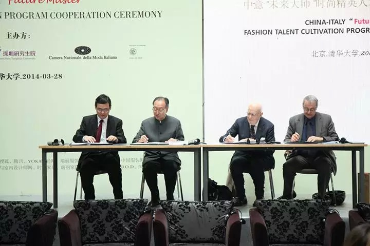 2014年3月28日,赫赫有名的米兰时装周的操盘手,意大利全国时尚协会的Mario Boselli主席出现在了清华美术馆,这一次,他做为中意“未来大师”时尚精英人才培养计划中的意大利合作方的负责人,亲自签署由清华大学深圳研究生院、中国服装设计师协会、米兰理工大学共同合作的教育培训项目“国际时尚管理”大师班项目,成为第四个加入到该培养计划的国际时尚权威机构。同期还举办了意大利之美-“探索意大利时尚”大师作品展。Mario Boselli主席欣然接受了清华大学深圳研究生院邀请其成为时尚教育的荣誉教授,他说非常感动,这是他继1984年成为中国的朋友之后的一个重要事件。