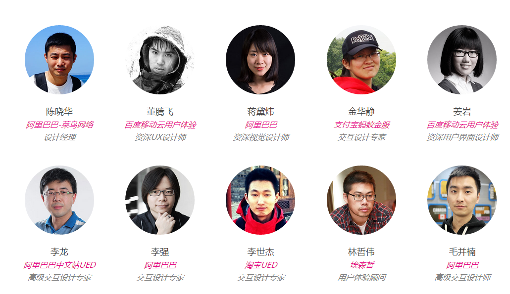 大会的内容有交互设计、视觉设计、用户研究、设计管理、设计思维、服务设计、设计教育、电子商务、设计创业、智能硬件等十大内容模块。目前公布的工作坊主讲人有来自阿里巴巴、百度、淘宝、支付宝等公司的资深产品经理、设计经理、UX视觉设计师。