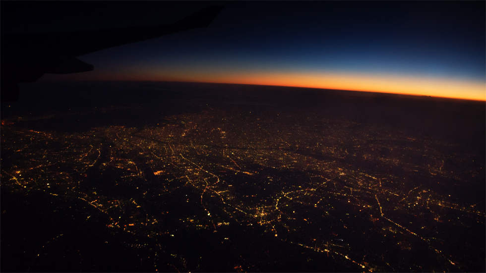 ▲来说说本次旅程的见闻和感悟吧。小编的眼睛从上飞机起就开始不停的转动,生怕错过了每一个旅程的精彩。这不,路过海滨城市的上空着实美呆了——一抹夕阳的余光与地平线上灯火辉煌的城市相互呼应,大片视角有没有!