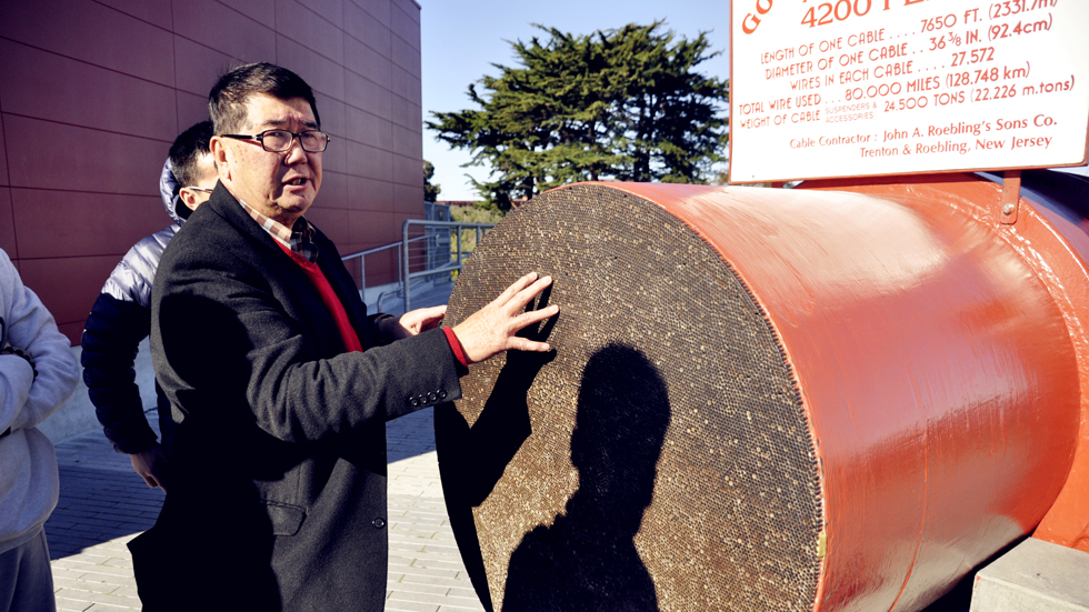 ▲每根钢索重6412公吨,由27000根钢丝绞成。想想团结就是力量,想想折弯一个筷子容易,一把筷子就很难。团队要想创造奇迹,就必须拧成一股绳。