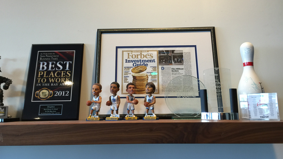 ▲Dropbox所有获奖都放在门口的书架上,让每一位访客都可以一时间感受到公司的殊荣。