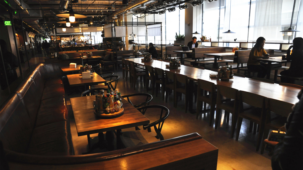 ▲咖啡馆式的办公区和休息区,皮质沙发,厚重的力量感,和温馨沉浸的休闲感受。这里提供全硅谷最有名最好吃的员工伙食。