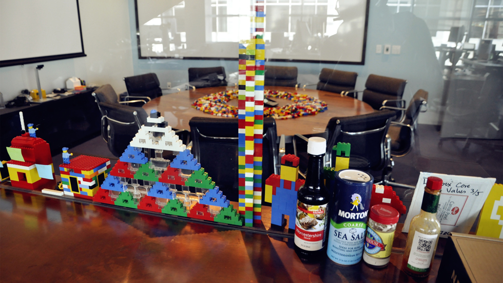 ▲开会之前的开脑活动——玩会乐高。有时候我们很难直接进入一个讨论,尤其是头脑风暴之前,不如先进行一个简单的拼装,几分钟每个人创造的都不一样,交流和思维从此开始。