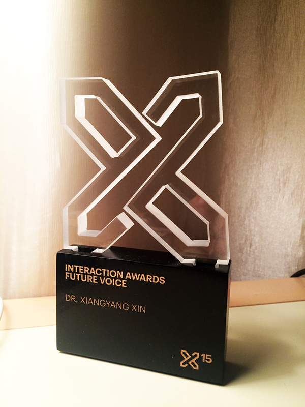 2015世界交互设计大会暨交互设计大赛颁奖仪式在旧金山落下帷幕(ixda.org),江南大学设计学院辛向阳院长荣幸获得由大赛评委会推举的交互设计协会年度最高荣誉奖: Future Voice of Interaction Design 2015(交互设计未来之声),以表彰辛向阳教授在交互设计领域所做的贡献以及其研究成果的前沿性和代表性。本届交互设计大会由博隆伯格赞助,汇聚了包括 Richard Buchanan(原卡耐基梅隆大学设计学院院长、交互设计学科创始人), Alan Cooper(《About Face》作者), Don Norman(《设计心理学》和《情感设计》作者), Tim Brown(IDEO主席)等众多领域创始人、顶级学者和产业界精英。这是设计交互设计大赛以来,首次由亚洲人获次殊荣。