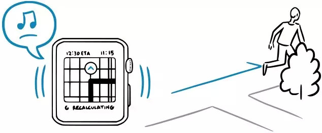 如果你正确的转弯了,手表会通过特定模式的震动或是某种愉悦的音效来做出正面反馈。