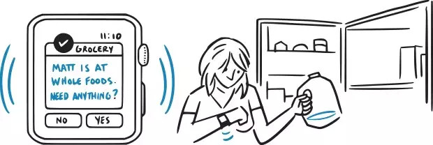 你进入这些卖场之后,清单共享者会收到提醒,问他们是否还有什么其他东西需要你顺便购买。