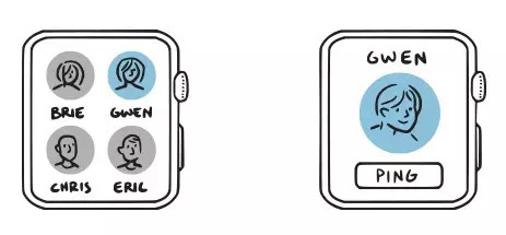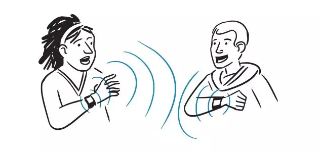两人未曾谋面,初次约见,距离进入一定范围时,手表会通过代表对方的特定震动模式来提醒彼此。两人距离越近,震动的频率越高。