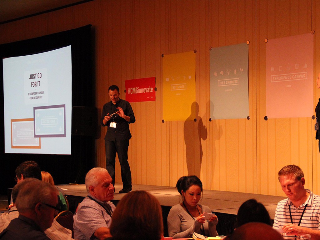 用户为本的设计--我们会邀请与会者参加用户为本理念的两个工作坊。在两个工作坊期间,我们讨论的议题囊括确定用户需求、概念成型、迭代和测试原型。两个工作坊都以Dropbox的设计经验模型为基础:定义--设想--提交--反馈。