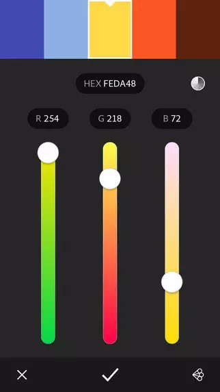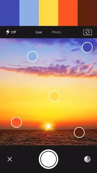 Adobe Color CC 最让人眼前一亮的就是其「实景取色」功能,打开摄像头,随着摄像头显示的场景变化,App 会自动提取其中的 5 种不同色值。一是其挑选的色值搭配非常优雅和谐。二是整个过程很流畅,没有任何卡顿,界面动画也很吸引力。