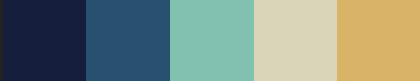 #161e3e #285171 #82c0af #dad4b9 #d8b368
