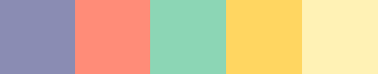 #8a8cb2 #ff8c78 #8cd6b5 #ffd661 #fff2b5