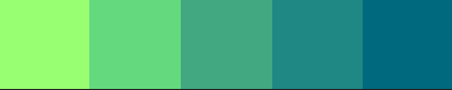 #98ff72 #65d97d #42a881 #1f8784 #00697d