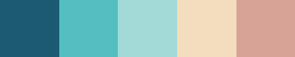 #1c5a74 #55bec1 #a3dad8 #f4ddbe #d7a396