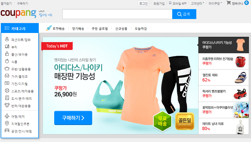 Coupang于2010年创立的电商网站,并在2014年底拿到高达3亿美元的融资。Coupang是一家非常重视UX体验的电子商务公司,从团购发展过渡到电商综合服务,重点在顾客购买体验上面下功夫。