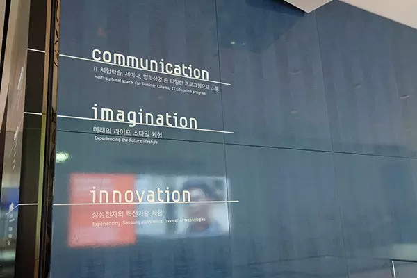 午后,IXDC来到三星d’light(即三星电子宣传馆),坐落在韩国首尔三星电子大厦内,其英文标注的d’light是数码(digital)和光(light)的合成词,含有“照亮世界的光”的意思,也含有与顾客分享数码技术带来的快乐和幸福之意。特别是“d’”除了digital(数码)的意思之外,还有dynamic(律动的)、dream(梦想)、diversity(丰富多彩)等含义。