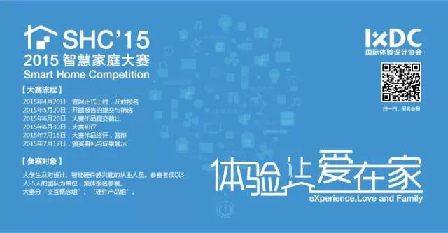 IXDC-2015智慧家庭大赛自4月20日开启报名以来,收到社会各界的积极响应,此次大赛分为学生组与从业组,面向社会各界征集交互概念作品和硬件产品作品。