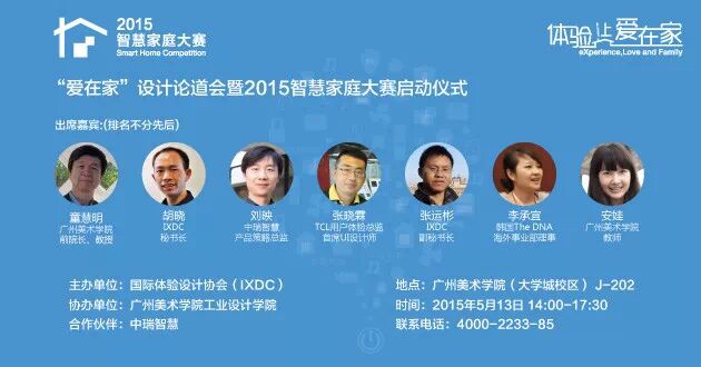 本次启动仪式不仅点燃IXDC-2015智慧家庭大赛的报名热潮,各位主讲人也将围绕对设计理解,进行“爱在家”设计论道会。TCL、韩国DNA设计咨询公司、中瑞智慧、IXDC等专家将为大家带来“爱在家”设计创新与设计思维的分享会。