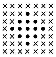 圆点是一组,叉是一组,不会认为同在一列的叉和圆点变成了一组,因为位置不如形状的相似性明显,组织起来更容易。