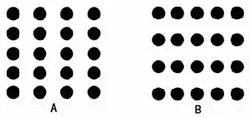 A被看成纵列,B被看成横行,因为它们形状一致的情况下,位置更接近就更容易分成一组,理解起来更容易。