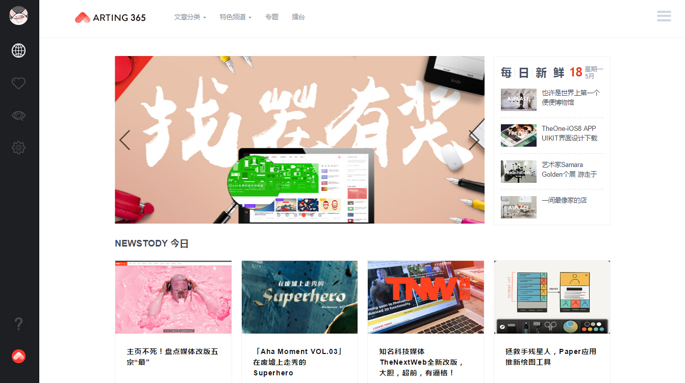 改版后到的Arting365官方网站将网站内容细分成设计创意、品牌公司、商业观察、智能硬件、设计生活、应用交互六大类,对内容进行更具体的细分,也让用户在浏览网站时,能更快、更针对性的找到自己想要阅读的内容。同时,网站的日常更新中还将增添更多的原创内容的发布。极富特色的Aha Moment、Beauty Room、Material Talk物质解剖科三大编辑特色专栏也会随新版网站一起上线,为用户呈现更多精彩的原创内容。