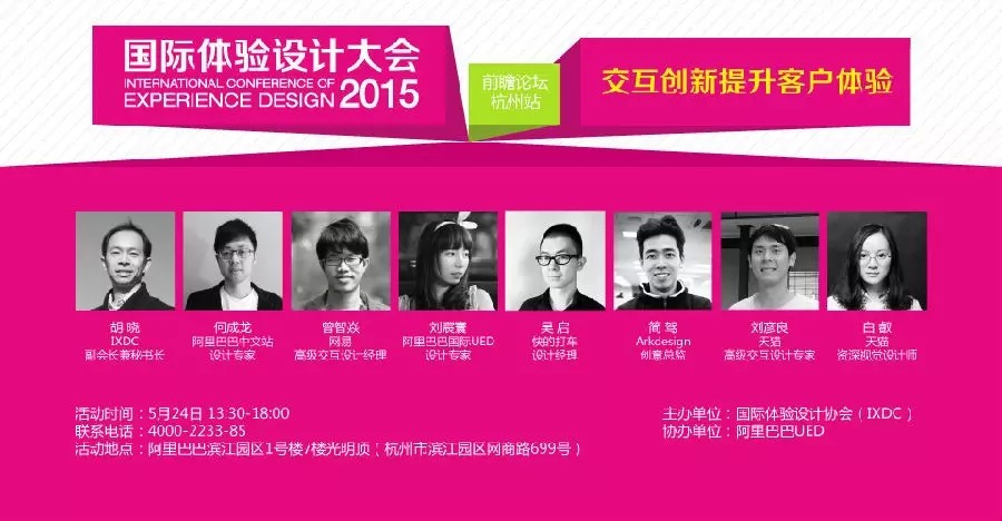 由国际体验设计协会(IXDC)主办的“2015国际体验设计大会前瞻论坛-杭州站”,将联合阿里巴巴于5月24日下午在阿里巴巴滨江园区举行。