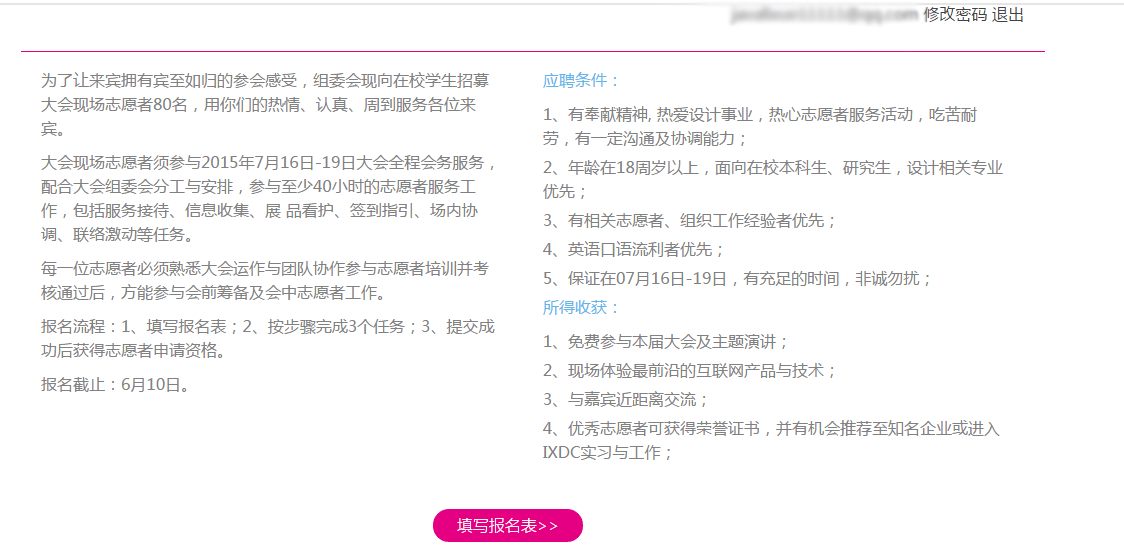 2015国际体验大会志愿者自开启报名到现在,场面非常火热,组委会感谢大家伙们的大力支持!
