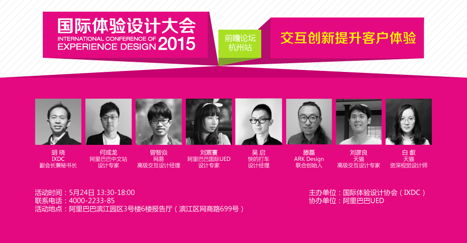 由国际体验设计协会(IXDC)主办的“2015国际体验设计大会前瞻论坛-杭州站”,将联合阿里巴巴于5月24日下午在杭州阿里巴巴举行。