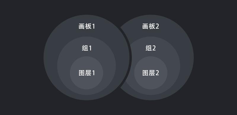 画板这个东西其实也并没有什么特别的,说白了就是在组之上又多了一层嵌套,或者说是多个文档显示在同一个文档里的效果。同一个图层/组不能共存于两个画板,画板与画板存在层级关系但并无从属关系(不能一个画板嵌套另一个画板)。
