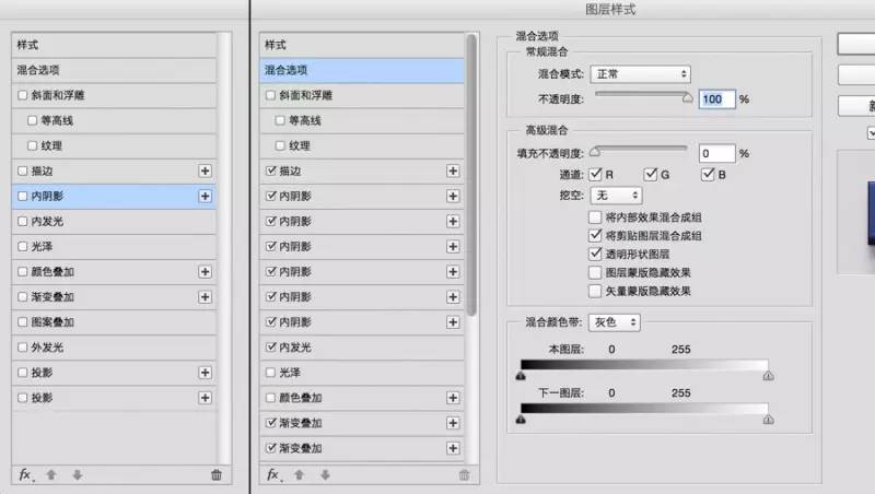 Photoshop CC2015中最大的亮点之一,多种图层样式可以在同一图层中叠加了!同一样式最多可以叠加十个,而且根据官方说明(现在还只有英文版),这种方式会比之前的多图层更不易产生噪点、水波纹之类。