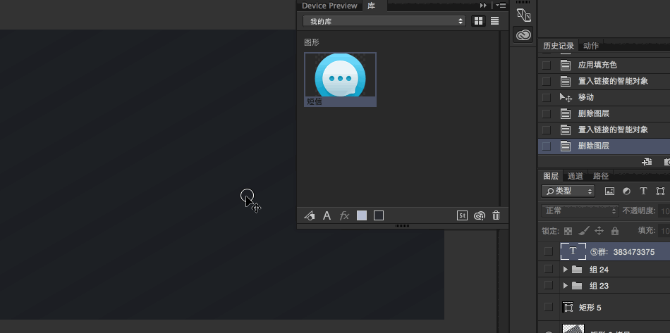 添加图形(出库):类似入库,从库界面中拖出即可,但注意!这里有两种拖拽方式!直接拖出的为“库图形”,按住Alt进行拖拽的话为普通图层。