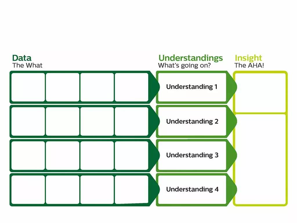 面对前端研究员从市场,用户和趋势中搜集到的大量信息,需要项目参与者和投资者,通过特定的工具和方法,一起分析数据(消费者洞察),提炼机会点,产生创新方案。