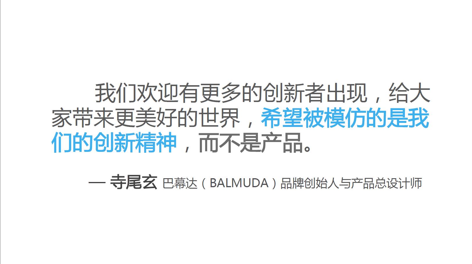 而我们的创新环境是什么?我们说越来越感觉到山寨的问题,廉价的问题,它已经成为阻碍中国创新成长的一个双胞怪胎。去年年底大家可能都知道,出现了非常多的山寨现象。国内的设计师们坐不住了,在今年1月17日,大家联合108个设计师发起了设计师底线宣言,什么叫底线?底线就是我们要守住自己价值的最底端。最底端是什么?不能抄袭,很可怜了我们的底线正在跌穿。