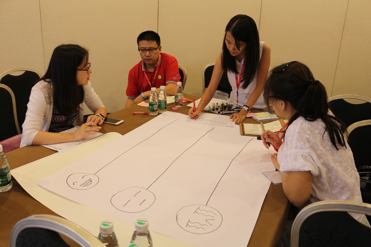 7月18日下午,在IXDC国际体验设计大会的工作坊中,来自美柚的设计总监刘宓与参会者一同探讨产品服务设计。
