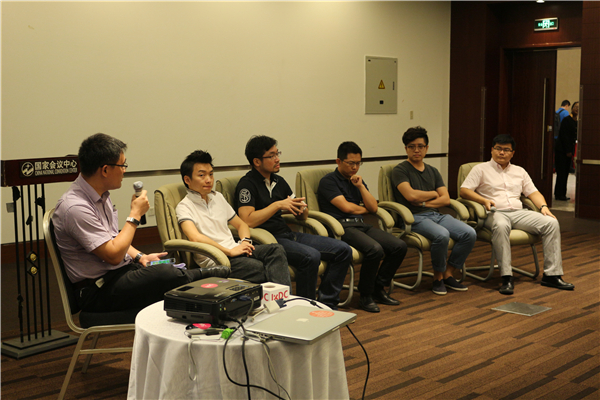 三位嘉宾进行了精彩的演讲后,葛院长带领大家开展圆桌讨论环节,来进行更激烈的交流和互动。有5位嘉宾参加圆桌讨论环节,分别是来自京东金融集团负责产品众筹智能硬件的梁博涛、暴风魔镜负责战略投资的杨宁、进行自主创业的王吉森、和硕联合的蒋文瀚、百度研究院的顾嘉唯。