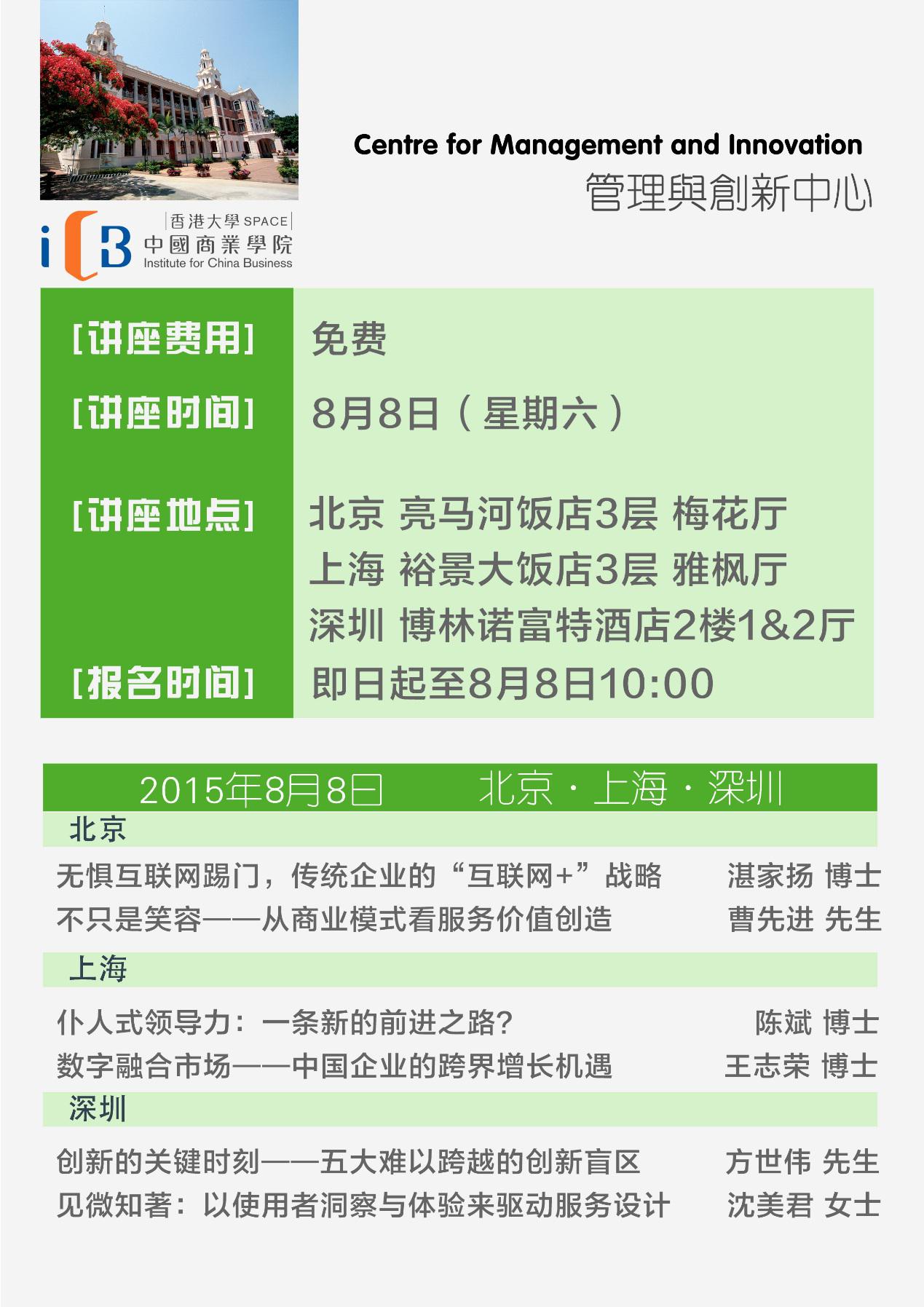 讲座现已接受社会各界职业精英报名,提交报名信息,我们会为您免费预留讲座席位。