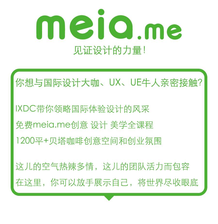 meia.me旨以通过公开课、云课堂等各种形式,与设计师们共同分享设计的价值,见证设计的力量,实现共享经济时代的知识共享。