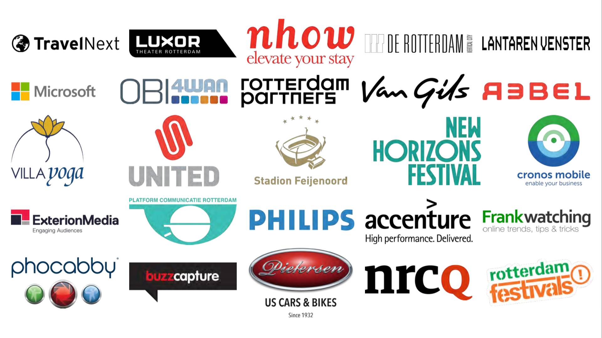 包括:导航和智能产品公司TomTom、新兴公司Blendle、阿姆斯特丹创业孵化StartupDelta、互联网设计公司Mirabeau、鹿特丹剑桥创意中心、荷兰最大的电商Coolblue、代尔夫特理工大学等企业与创新学院。