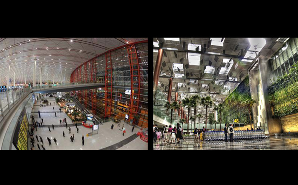 全球一体化,什么是同质化呢?你住在五环,我也住在五环,我们都堵在路上,这就是同质化,未来消费者面临也是同质化。这是我们在机场的鸟瞰图,很有意思。通过机场停泊机位的地方,如何帮助消费者尽快登机,或者是下飞机后尽快找车。大家虽然到同样目的地,但是可以快速离开,或者是去登机。在北京首都机场通过新的设计缩短出入口以及登机位之间的距离,在全球各大机场都是类似这样的设计,通过这样的设计使消费者可以快速离开,下飞机后可以很快登上你的专车,登上机场巴士或者地铁等等,这是新的客户体验。