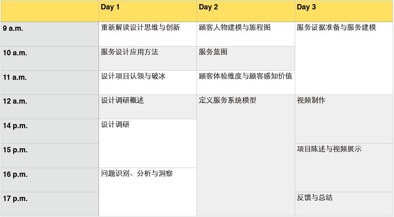 一个出色的模型将能更好地反映解决方案的价值并有利于团队进行模拟测试与反思。建模模块将引导学生完成顾客旅程与服务蓝图,从而使学生对服务系统与顾客体验流的关系有一个深入的认识。