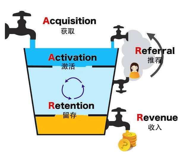 Acquisition(获取)/Activation(激活)/Retention(留存)/Referral(传播)/Revenue(收益)