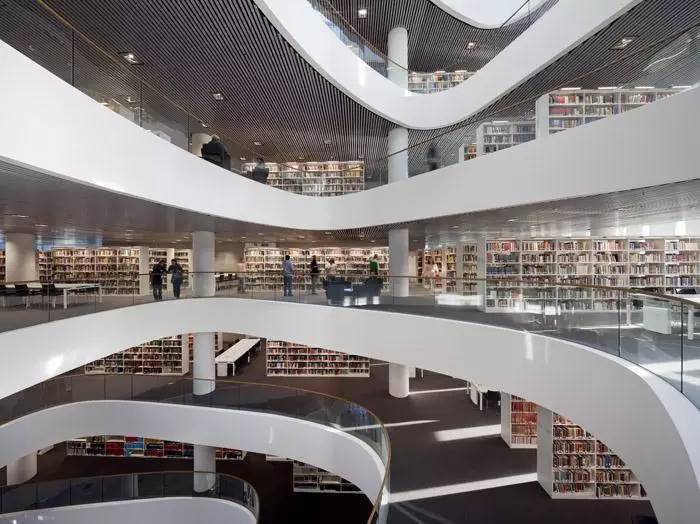图书馆还用到bookBot自动化图书配送体系。这个系统高效的存储了200万实体藏书,节省了超过2万平方米的面积,节省预算并节约出更多的空间用以技术研究和用作学习空间。