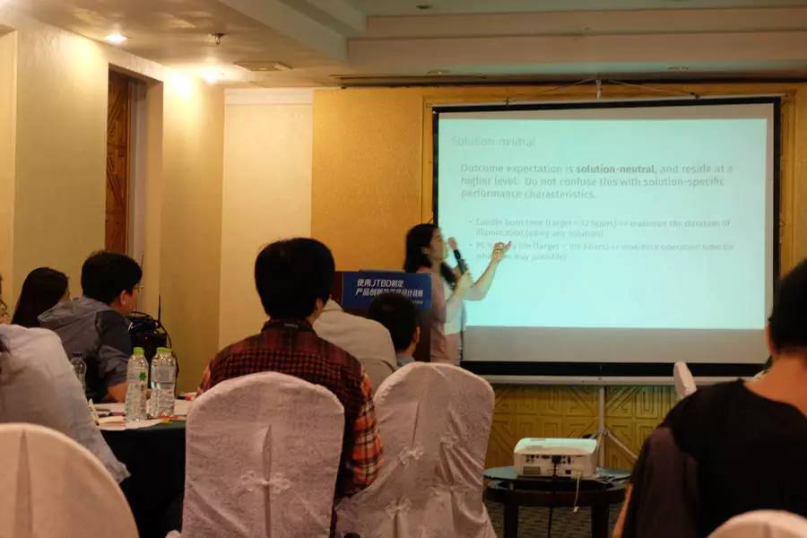 简短的理论介绍后,张晶华带领大家进行了第一轮小组练习,从实践上引导参会者发掘现实生活中的JTBD。话题从约会市场、用车服务、家用采购和手机数据使用展开,从具体目标上对于用户可能的JTBD进行分解。