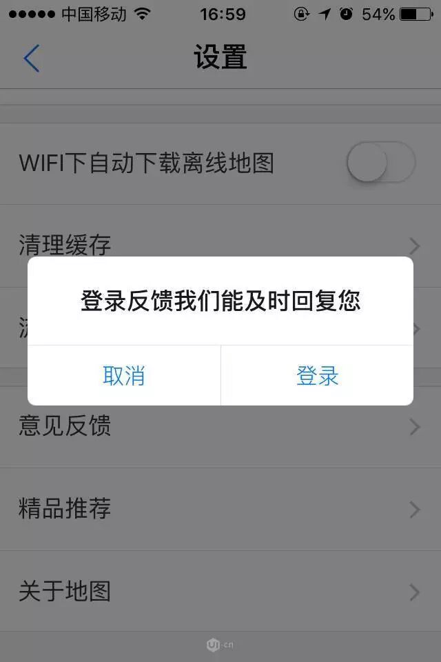 以腾讯地图举例,在未登录帐号的情况下,点击意见反馈栏,则会弹出要求登录的提示框,点击取消则不能进入。尽管登录帐号或许能够提供更加详细的反馈信息,并且能够得到更加及时的回复,但这显示对用户使用该功能的体验造成一定的影响,如何让用户登录应该在登录模块进行优化。登录对于一款工具类的 app 来说,如果社交功能不是必须的,那用户不一定会选择登录帐号。如果登录模块还有复杂的流程,对于本身就有问题并且需要反馈的 app 来说,用户很可能会选择用脚投票。