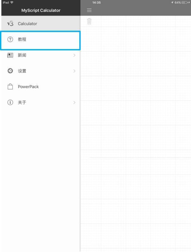 从产品的类型来看,不同类型的使用难度是不一样的,不同用户的学习成本也是不一样的,因此不可以用专家用户的标准去要求所有用户。如果人人都是极客,能够自己谷歌解决问题,那么这个功能自然也就没有存在的必要了。通常来说,工具类应用的操作复杂度更高,用户的学习成本也更高。同时由于工具类应用的使用频率较低,即使当时学会了操作方法,过一段时间可能就忘了。比如Calculator这款手写计算器,在右侧汉堡菜单中单独列出了“教程”一栏,用动画+轮播图的形式展示如何进行计算。