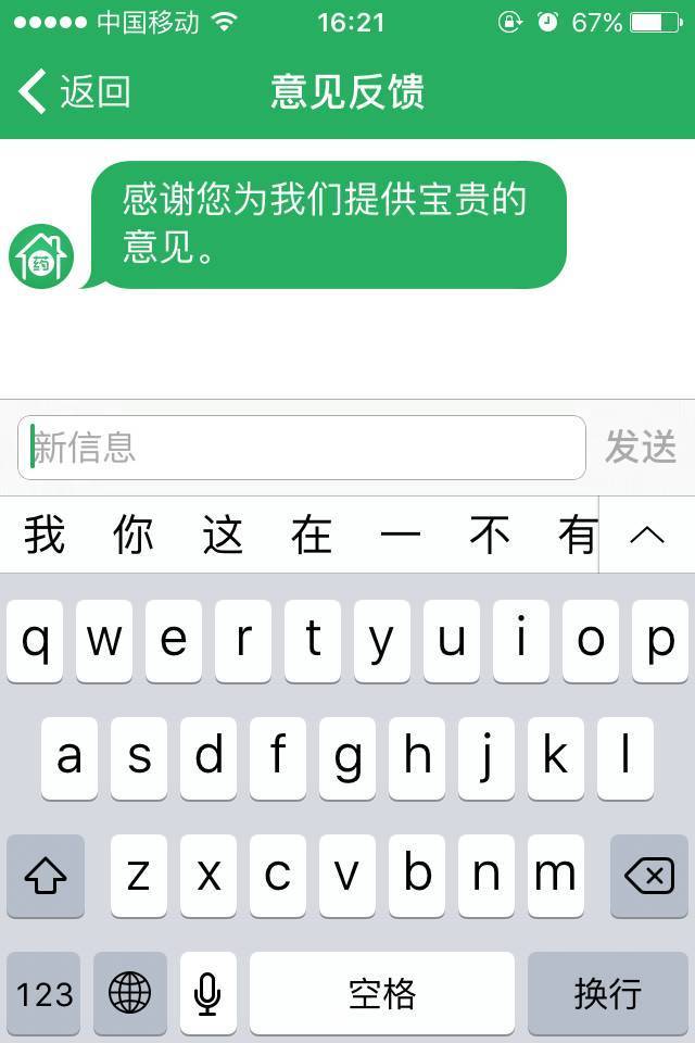 第1种,发送消息:比如上面提到的家庭用药,就采用聊天窗口的形式,像聊天一样进行反馈,产品团队的回复(如果有的话)也会以同样的形式呈现给你。但是只能发送文字,不能发送图片/语音,更别提发红包了:)这种交互方式的好处在于:借鉴用户已经普遍接受、相当熟悉的聊天方式,不仅感到非常亲切自然,而且表达地更加真实。但是就像即时聊天带来的弊端一样,用户的表达方式可能会非常琐碎,原本一句话能够表达清楚的,往往会分好几句、好几次分别发送出去,加重团队的负担(比如10086人工陪聊服务)。另外,由于用户对即时回复的心理预期,如果产品的相关团队回复太慢,可能会导致用户心里产生落差和不满。