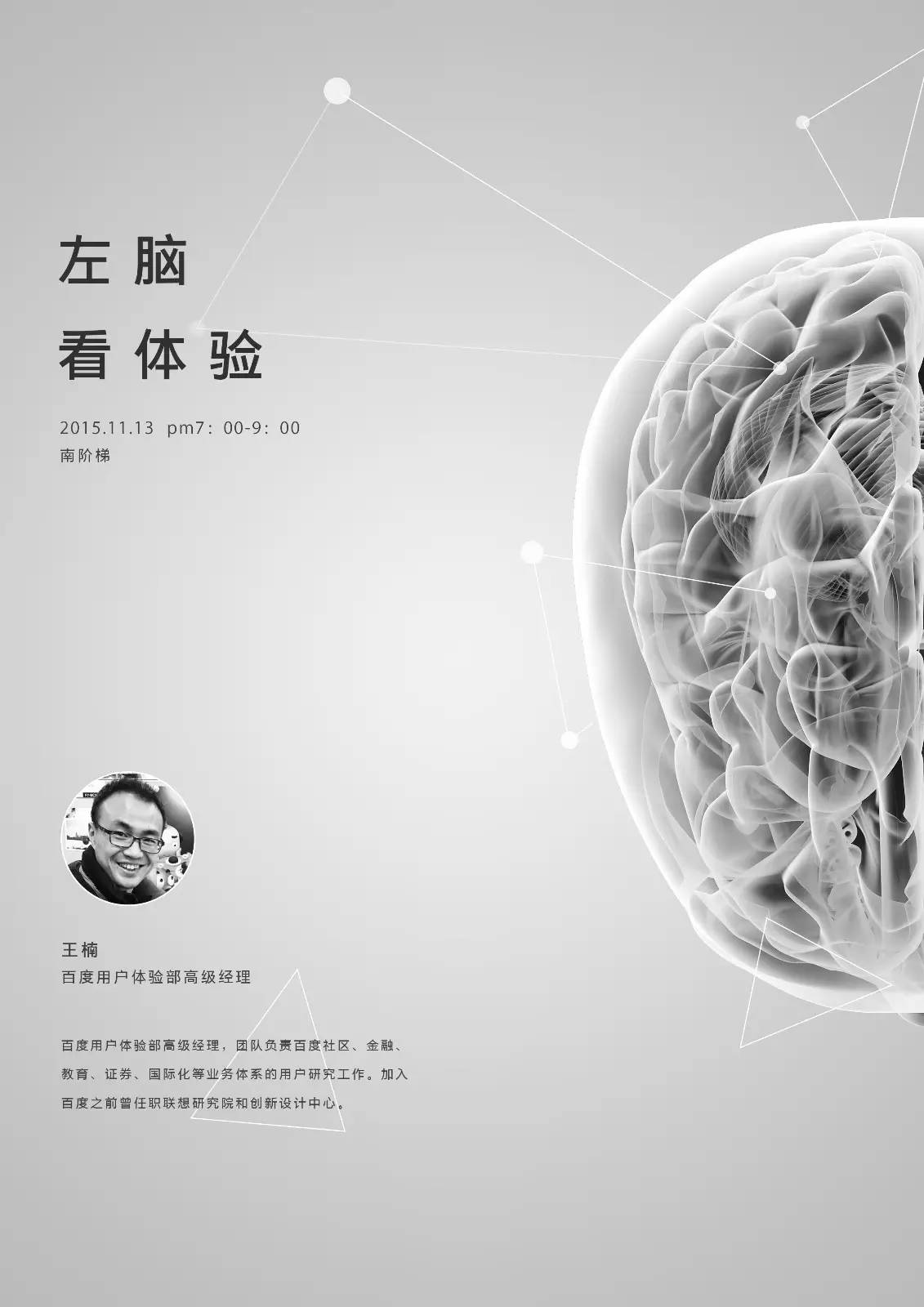 主讲人:王楠(百度用户体验部高级经理,团队负责百度社区,金融,教育,证券,国际化等业务体系的用户研究工作。加入百度之前曾任职联想研究院和创新设计中心。)