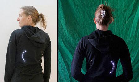 衣服背部有LED方向指示灯,手腕处带有控制开关,骑单车时很实用,提高安全。