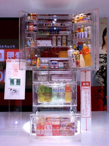 这款冰箱是不是很漂亮?由于是透明的,所以一定要保持内部的清洁和东西的摆放有条不紊,否则所有的一切都会一览无余的。