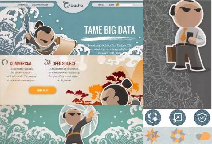 国外网站让我感受最深刻的,是对品牌的塑造和表现力(第一屏非常重要)。Basho的传统日式风格,Docker的海洋主题,Foundation长两只角的小萌兽,Heroku的紫色+干练线条,Cloudera的抽象图形及色彩运用等等,都给我留下了深刻的印象。