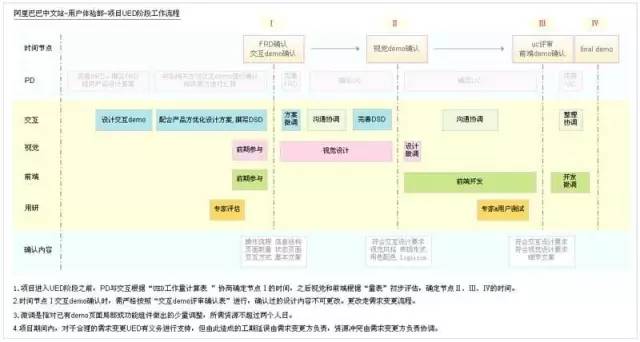 根据阿里巴巴目前的产品开发流程,交互设计是大环节中的一个小点,抛开杂乱的干扰信息,单纯考量交互设计师在过程中的参与度,我们就能得到一个理想化的交互设计行为流: